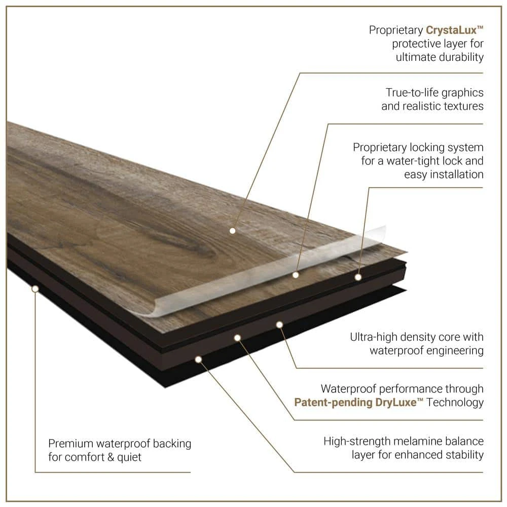 Waterproof, scratch & stain resistant hybrid rigid core flooring