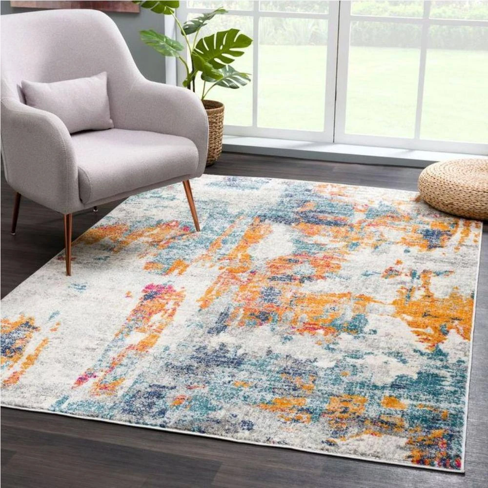 All of the great artists of the past century know the power of color. This area rug leans into this style and history of aesthetic design to create something completely unique for your space. The shades of grey are a stunning backdrop to the pops of blue, orange, navy, and pink. Like paint splattered on a canvas, this seemingly random work of art brings color and storytelling to life. Perfect for those who value durability and easy designs, this is an area rug you can adapt to any existing space.