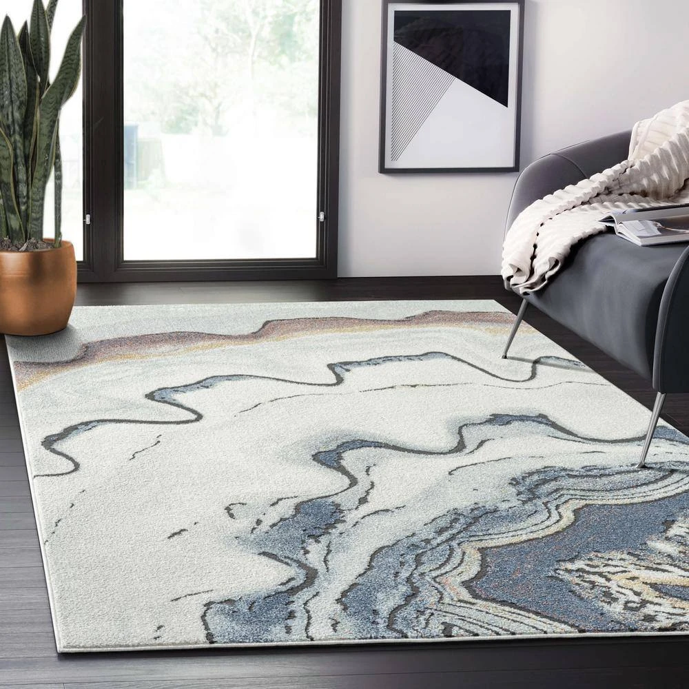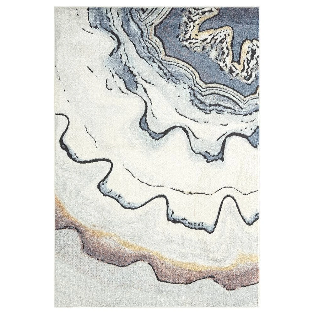A modern take on rug design inspired by the natural precious stone in natural colors. This design from the Venus collection portrays the lateral cut of a precious stone. The lines of the stone can be seen in various natural colors blue, beige, rust, and yellow. This rug design will elevate any decor space whether it’s a living room, office space, bedroom, or kitchen.