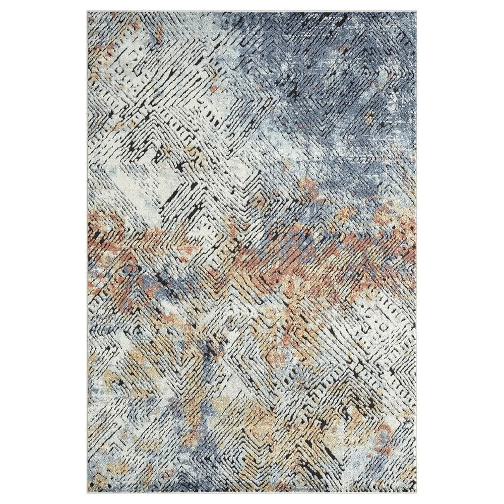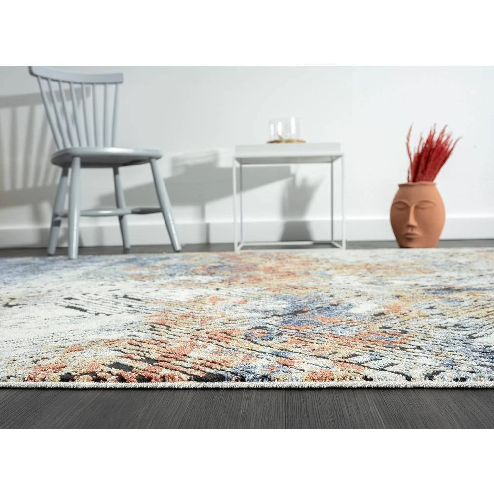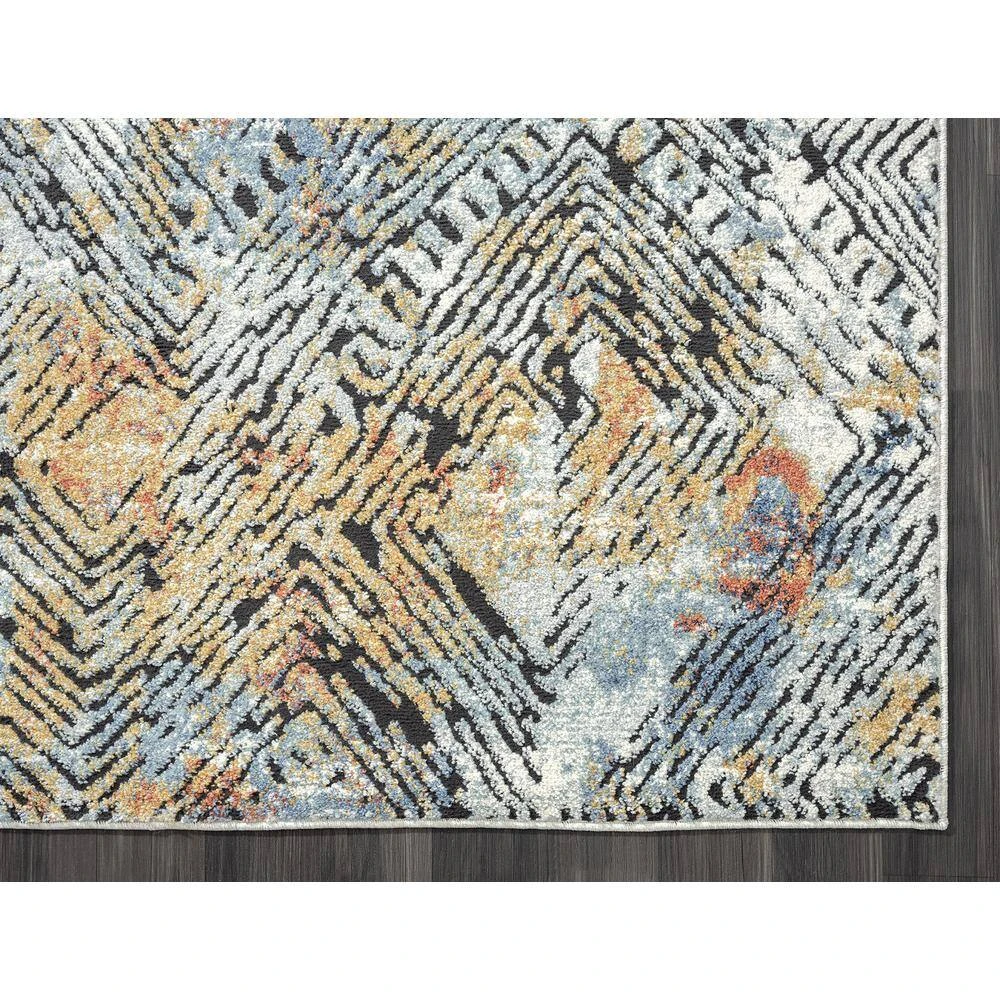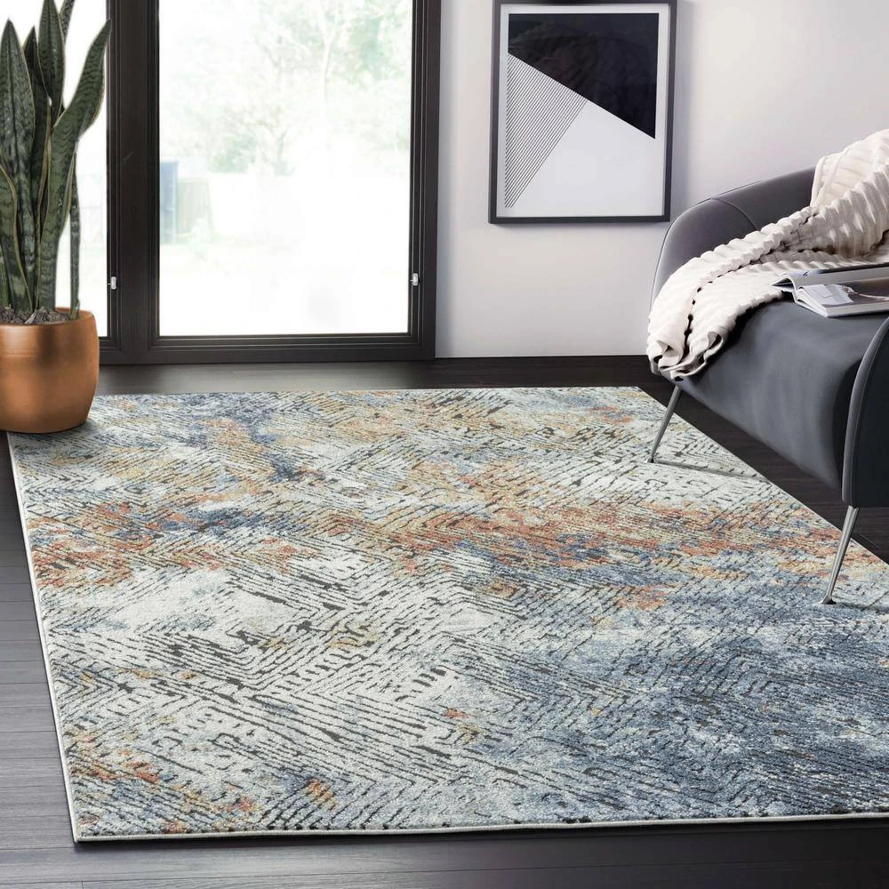 This rug design features a linear etched design in various directions creating an appealing abstract design. Elevate your space with the style and multicolor hues of this area rug. Bring in various decor elements with the greige, blue, red, orange rust found in this rug. The texture of the weave creates a soft rug to adorn your living room, bedroom, dining room or any other space.